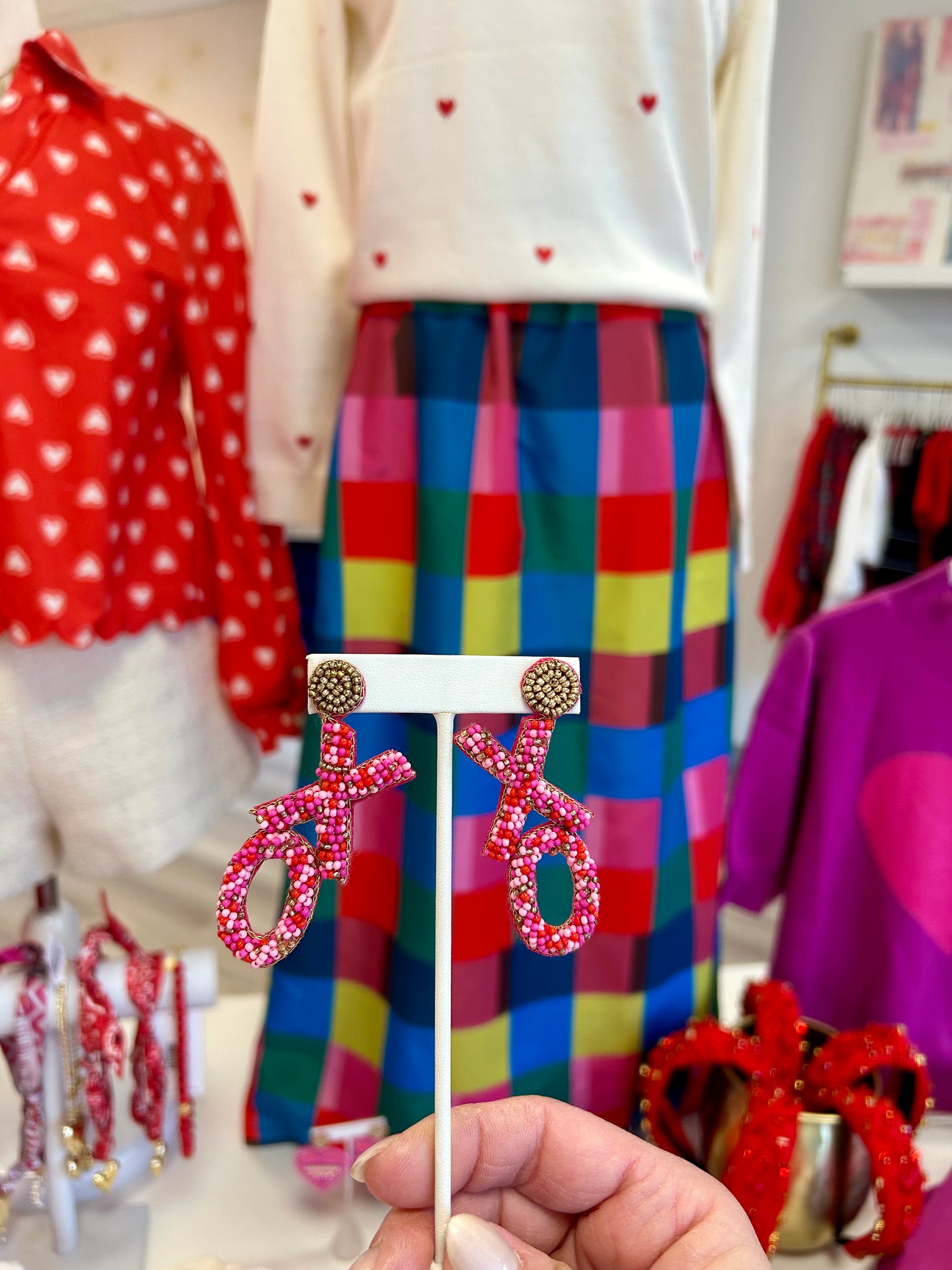 Larger size beaded XO earrings. Adorable “XO” beaded Valentine’s earrings! Earrings are nickel-free, surgical steel and felt-back making them very lightweight and great for all-day wear.