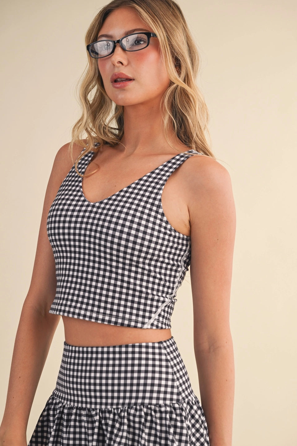 Black Gingham Aligned Cropped Top