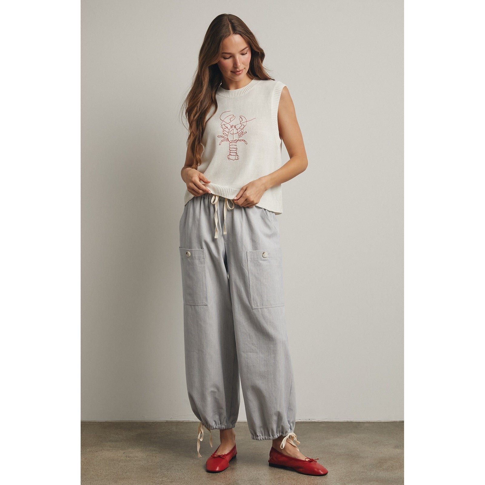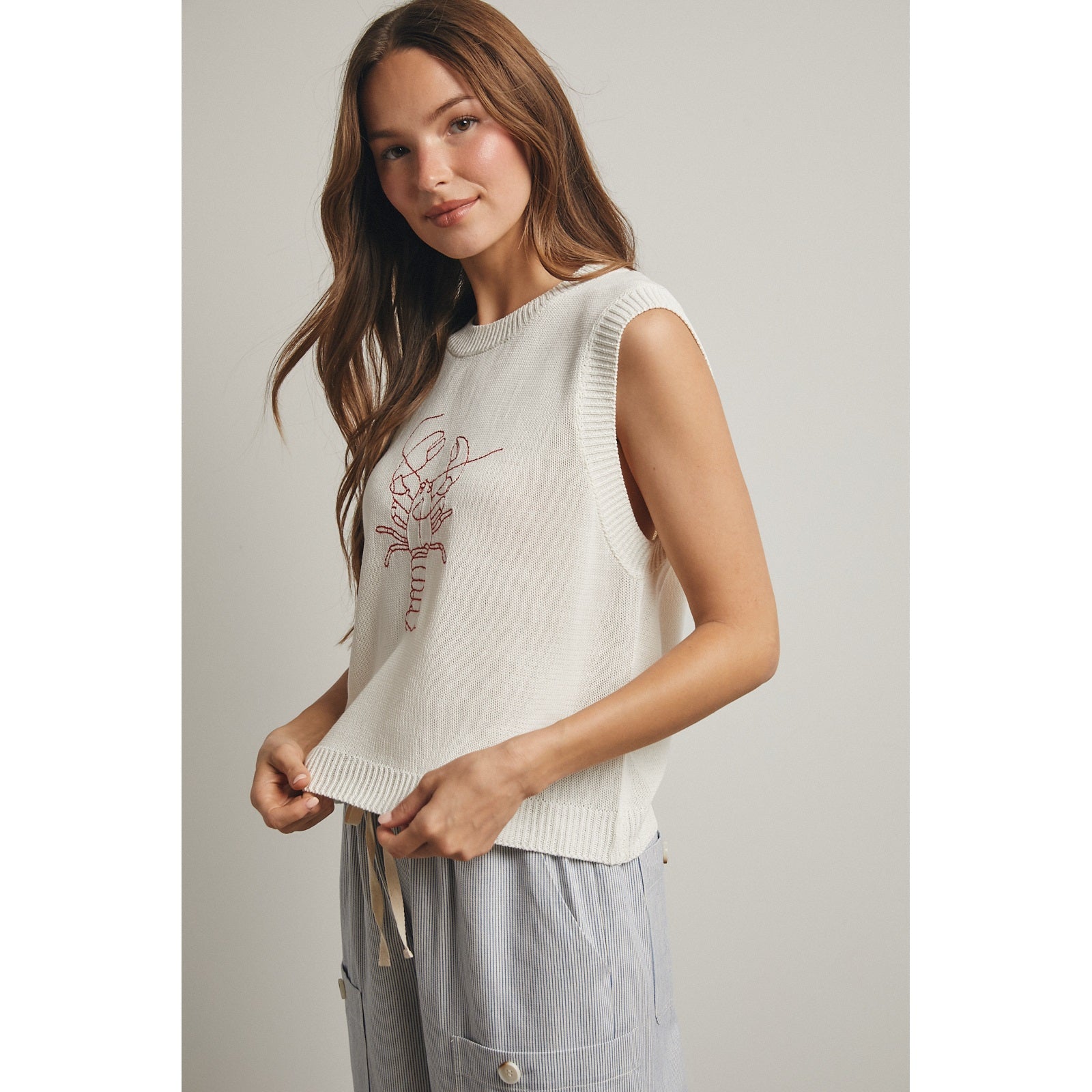 Bring a touch of coastal charm to your everyday style with this sweater vest, featuring a bold lobster embroidery. Easy to pair with shorts or layered over a button-up, it’s the perfect piece for seaside strolls, casual brunches, or relaxed summer getaways. - SLEEVELESS, ROUND NECK, COMFY, EASY, RELAXED, CASUAL, EVERYDAY, SUMMER, SPRING * Due to lighting and differences in monitors, actual colors may vary slightly from what appears online.