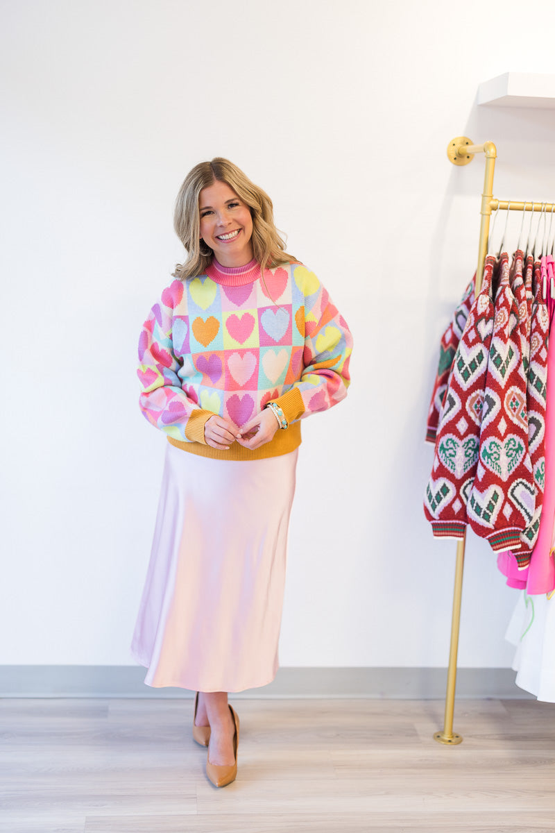 Mock Neck Heart Sweater