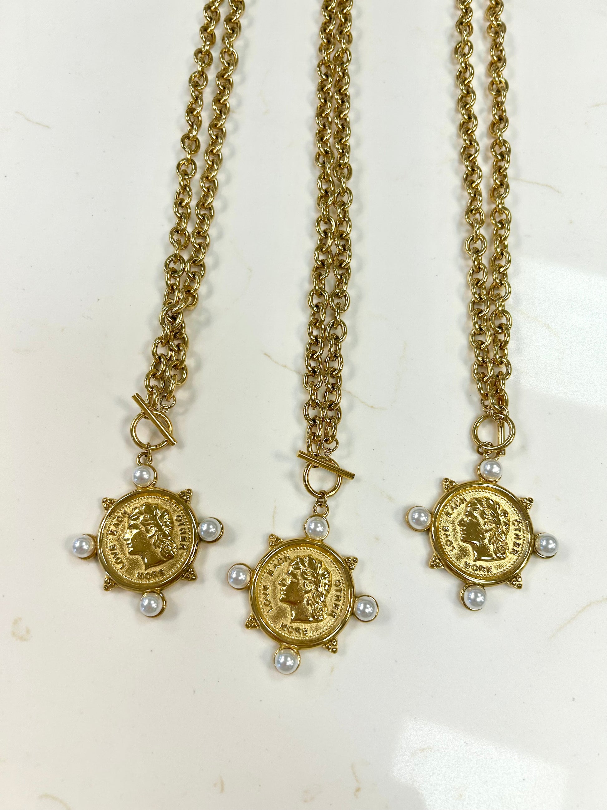Our Pearl Coin Necklace, from CHANSUTTPEARLS, is water-resistant and comes with a lifetime warranty. This 18-inch pendant charm necklace is designed for longevity.