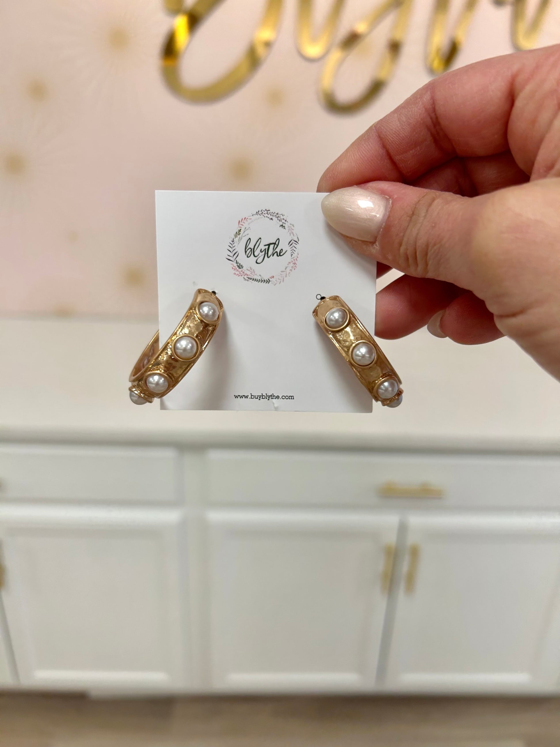 Worn Gold Pearl Hoop